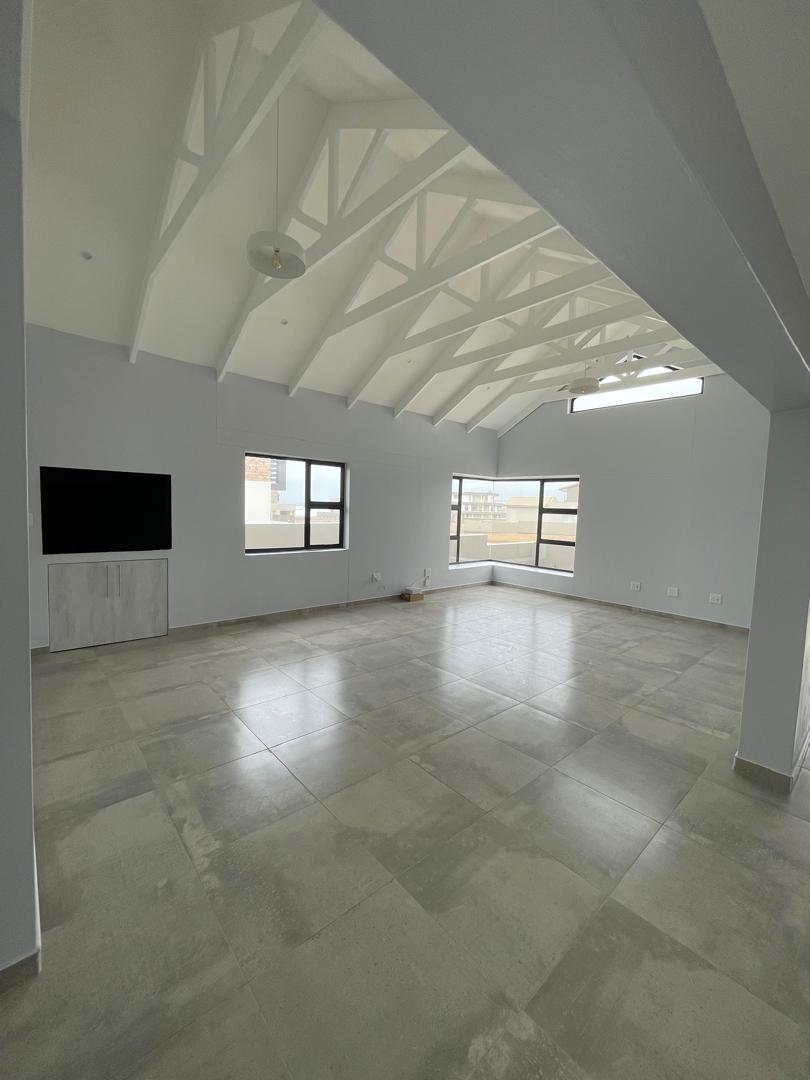 Open plan Living and Dining area with indoor BBQ (exposed wood trusses)