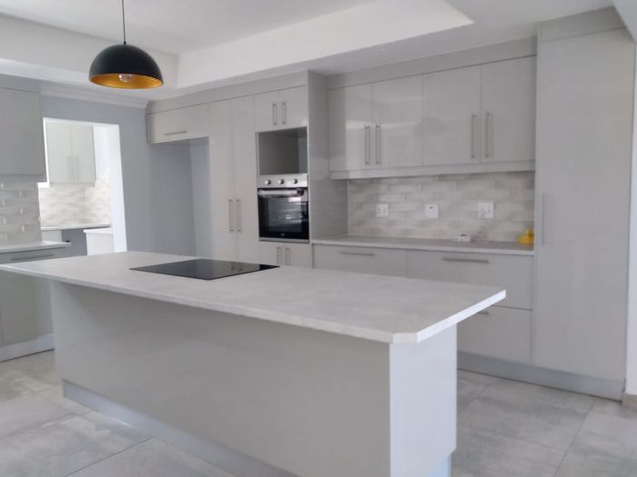 Entertainer's paradise with indoor and outdoor braais, sunroom and scullery, set in a peaceful suburban 1000 m² plot. Includes a bachelor flat, three bedrooms, two bathrooms, and four garages.