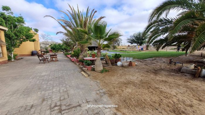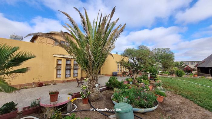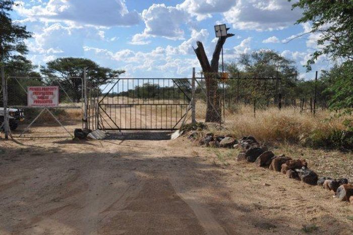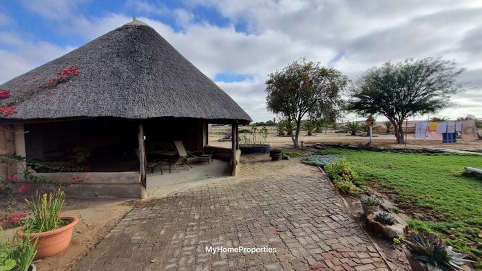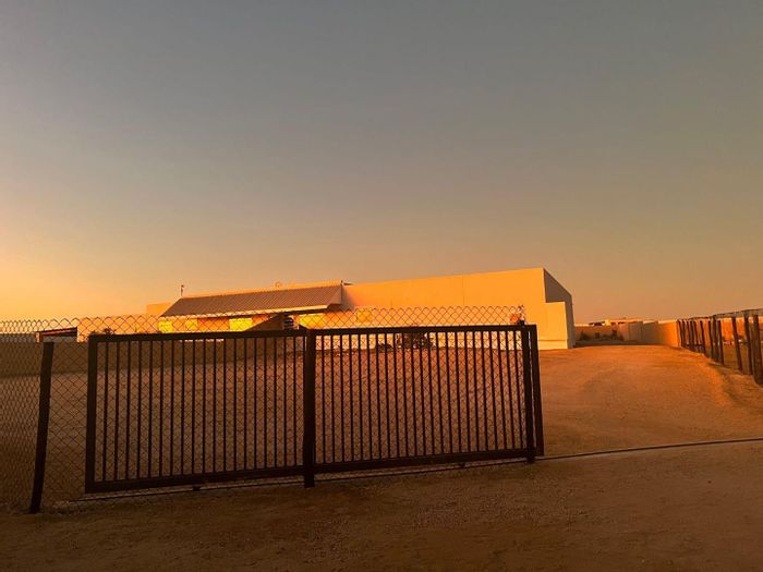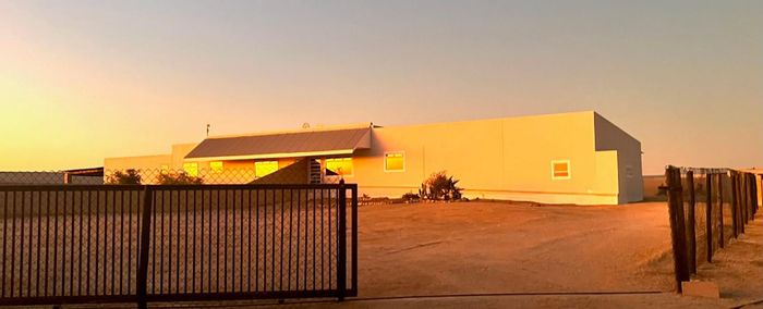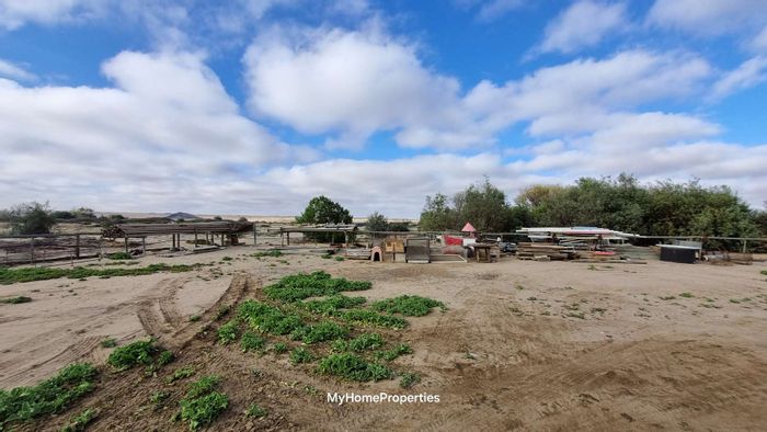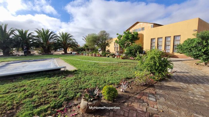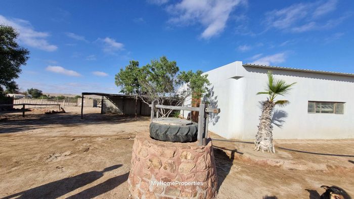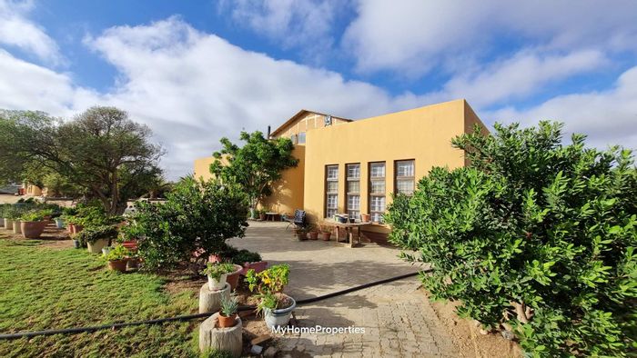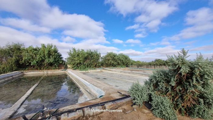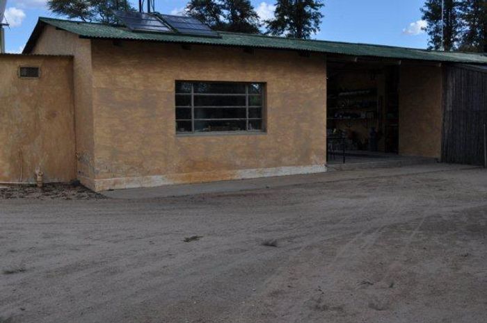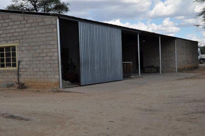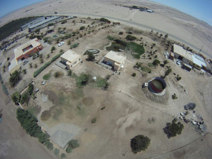 204HA property in Omaruru for sale, featuring game fencing, boreholes, houses, flats, staff accommodation, and various agricultural facilities.