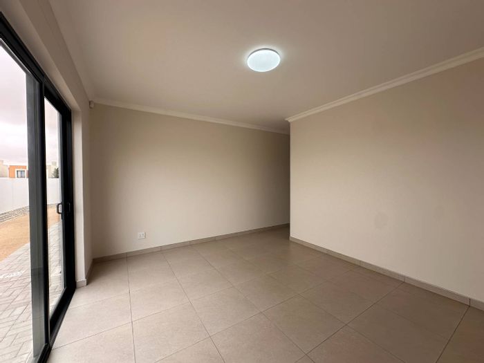 Coastal family living in Mondesa, Swakopmund — secure new community with open-plan modern kitchen; three bedrooms, one bathroom and double carport.