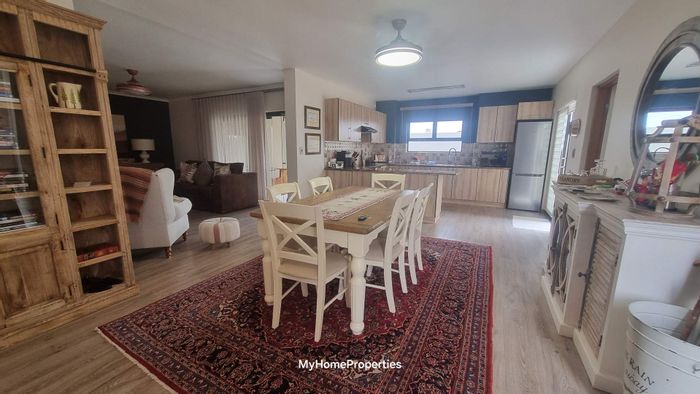 Upmarket, relaxed living in Kramersdorf near dunes and riverbed; pet-friendly complex. Modern townhouse with indoor braai entertainment area, stylish kitchen, three bedrooms, two bathrooms, double garage.