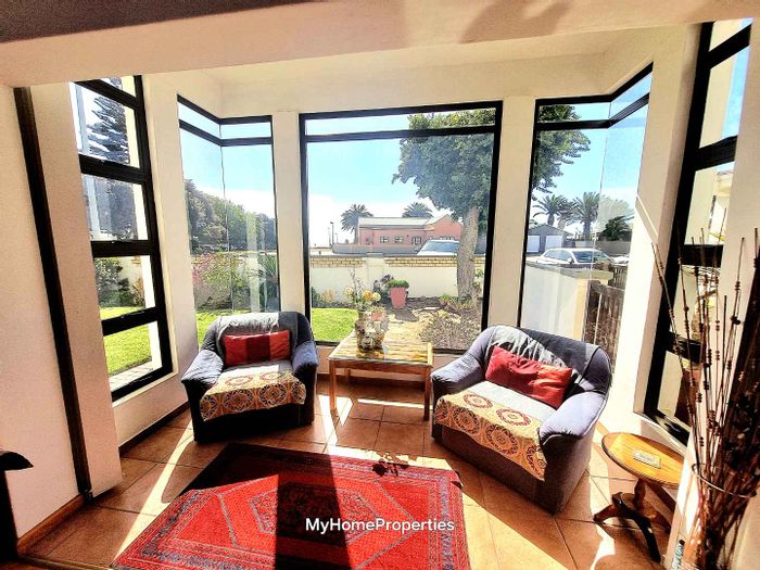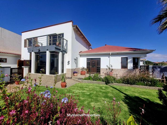 Coastal living in Vineta North, Swakopmund — uninterrupted sea views, private gardens and outdoor entertainment, plus two self-contained flatlets for rental income. 5 beds, 4.5 baths, 2 garages.