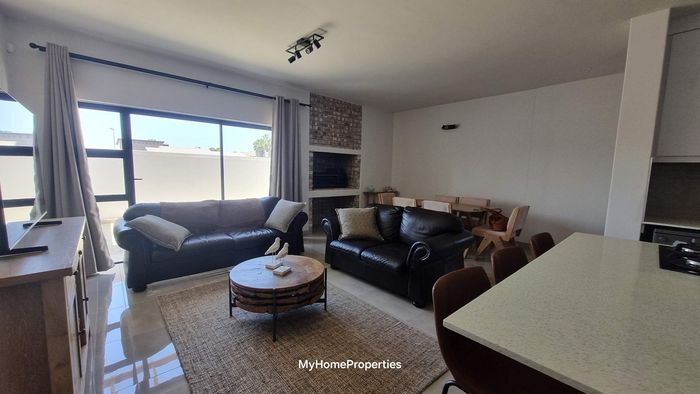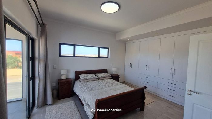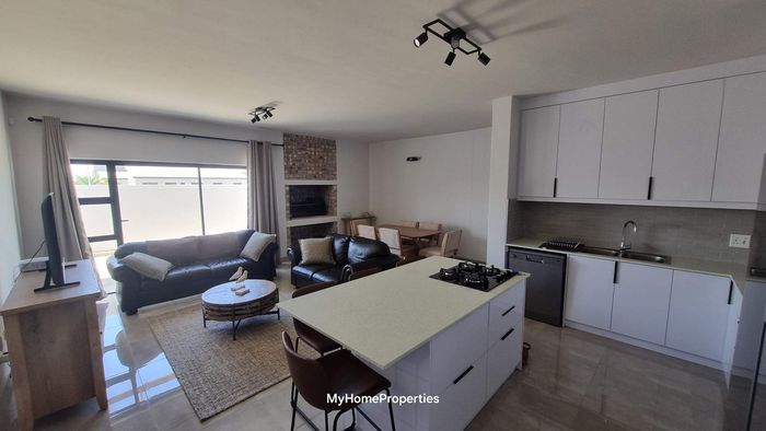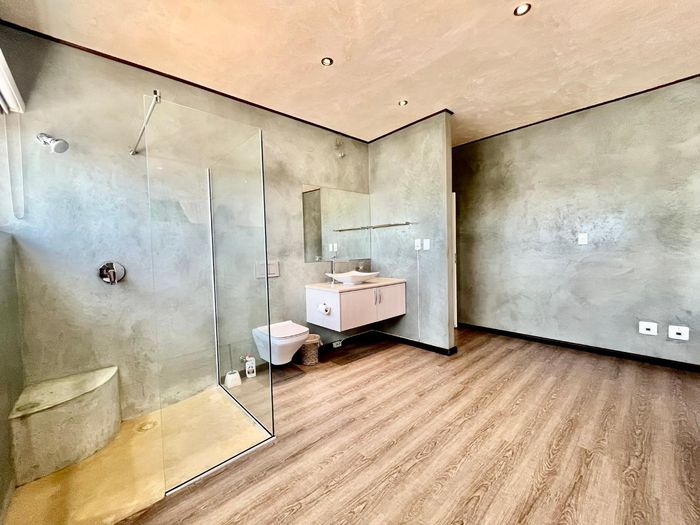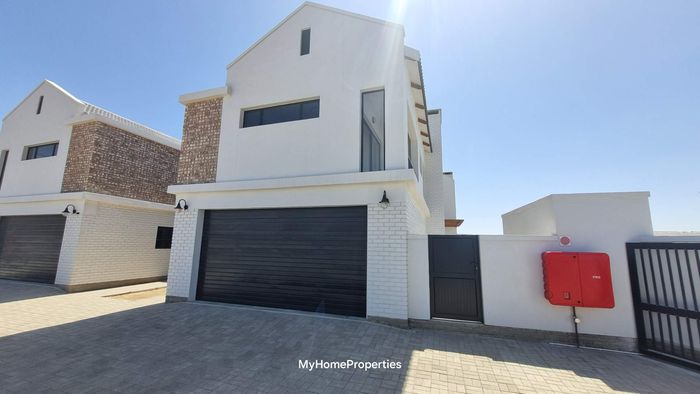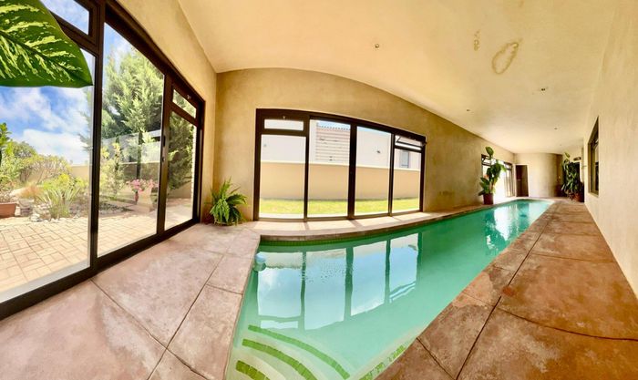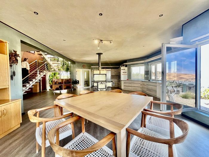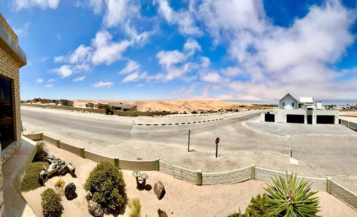 Dune-side entertaining lifestyle in sought-after Kramersdorf, steps from the Swakop River — private heated pool, expansive dune views and a self-contained flat; two bedrooms, two baths, three garages.