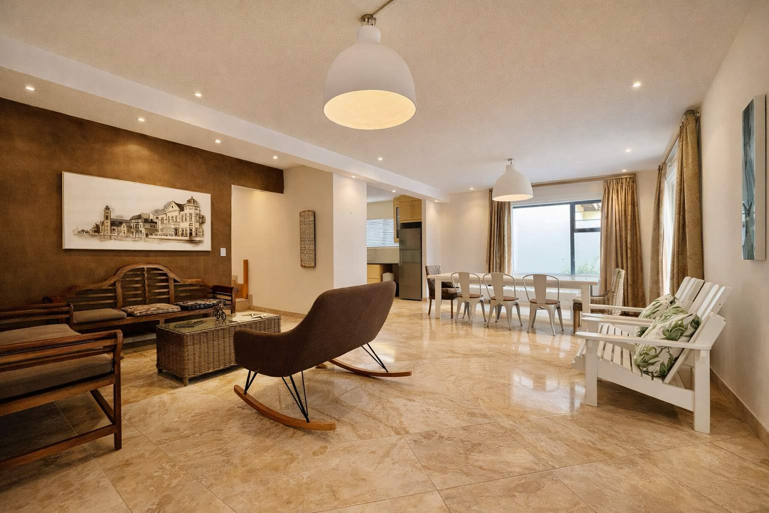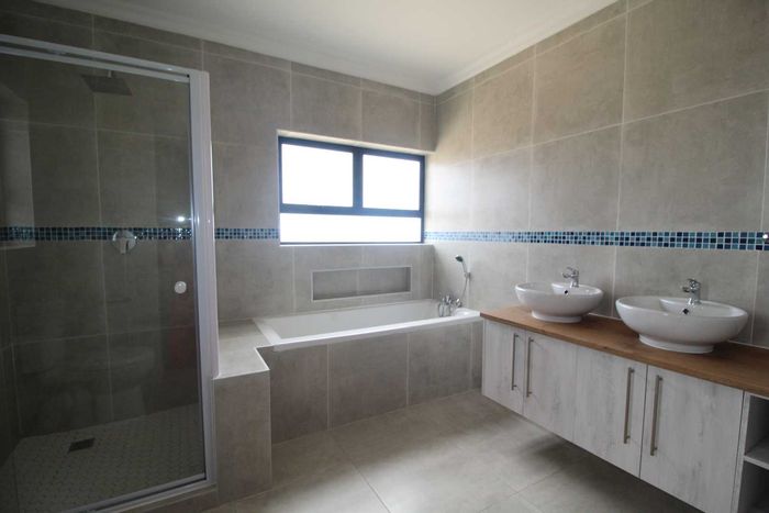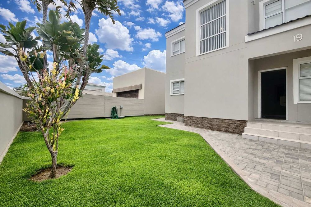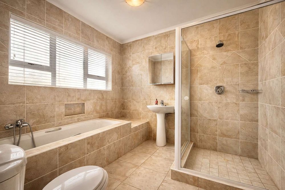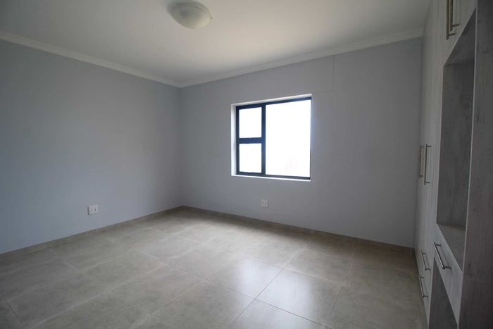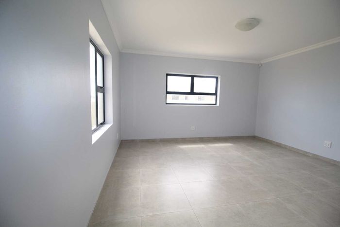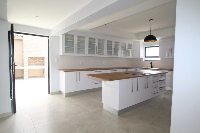 This well-appointed home offers a comfortable and practical layout, perfect for family living. The ground floor features an inviting entrance, open-plan TV and dining area, a kitchen with built-in cupboards and stove, plus a separate lounge/entertainment area with indoor braai.