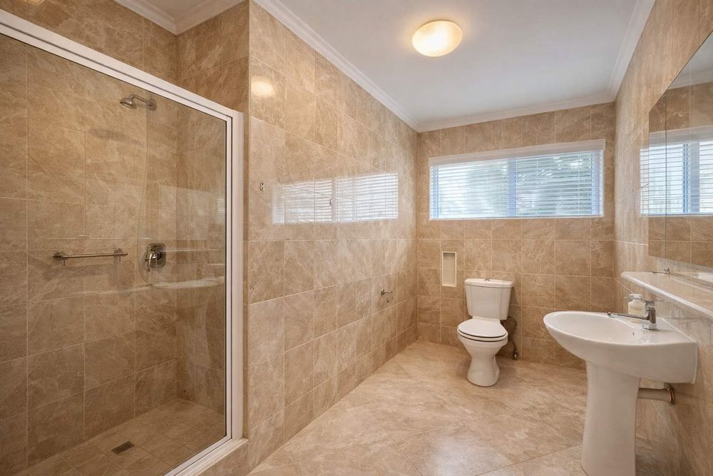 Upstairs offers three bedrooms with built-in cupboards and two bathrooms, providing ample space for the whole family.